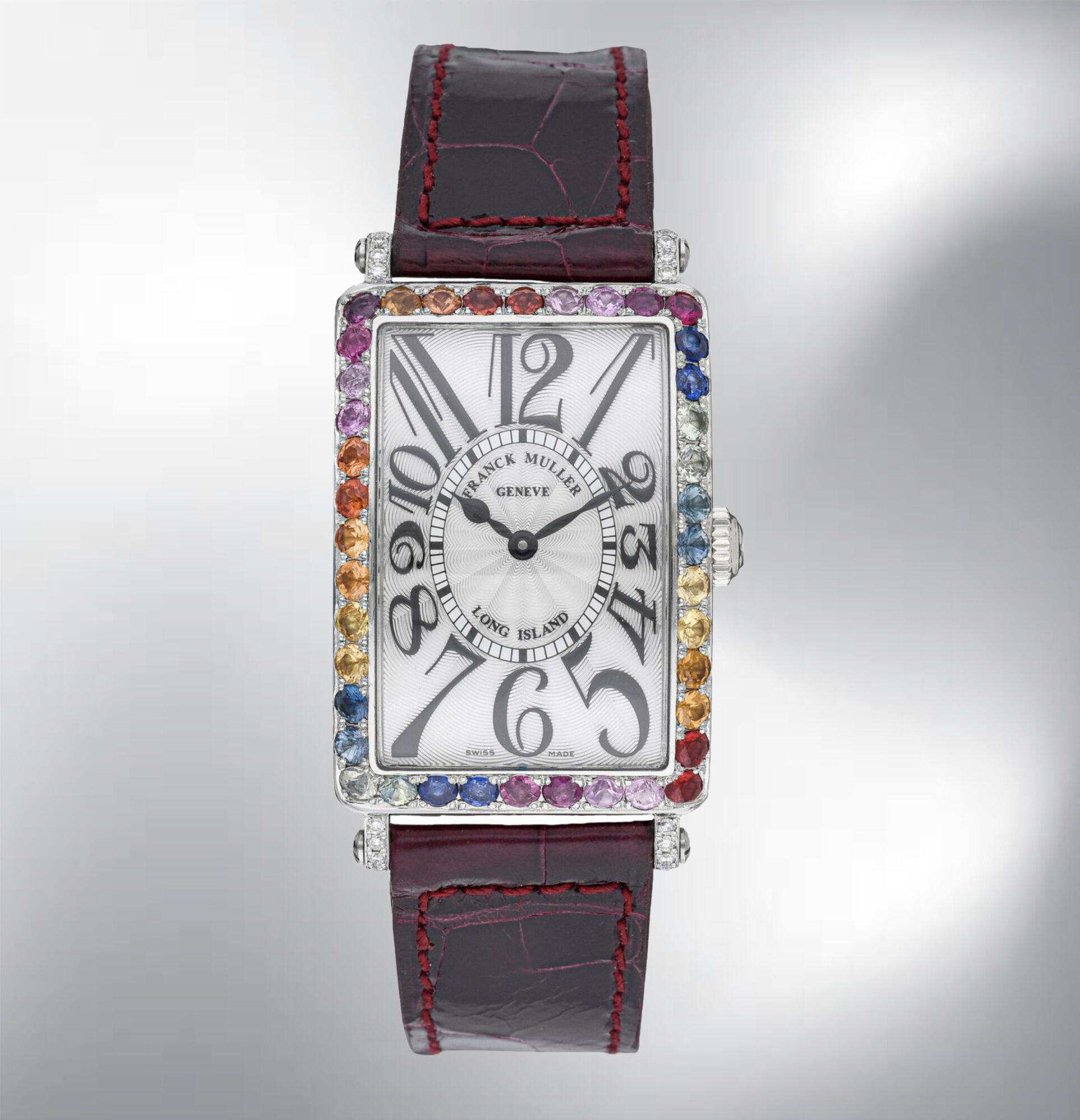 Franck Muller Long Island in steel with rainbow stones on bezel, with box