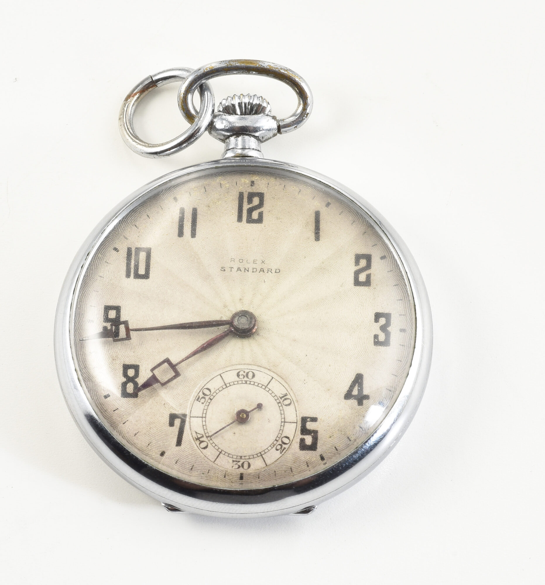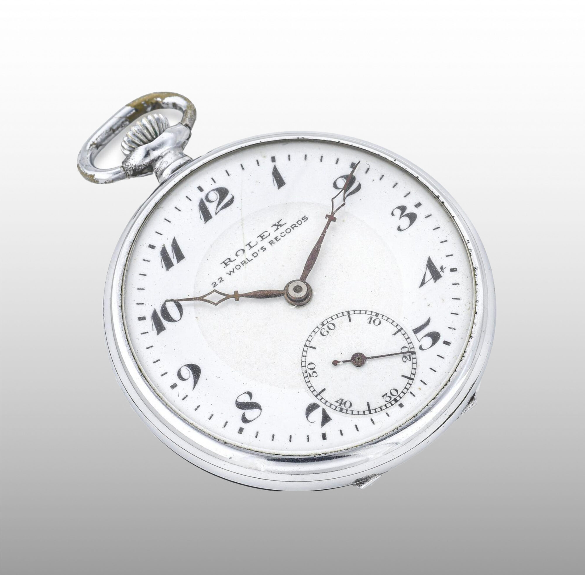 Vintage 1920s Rolex open face Pocket Watch in Nickel Plate, Manual wind