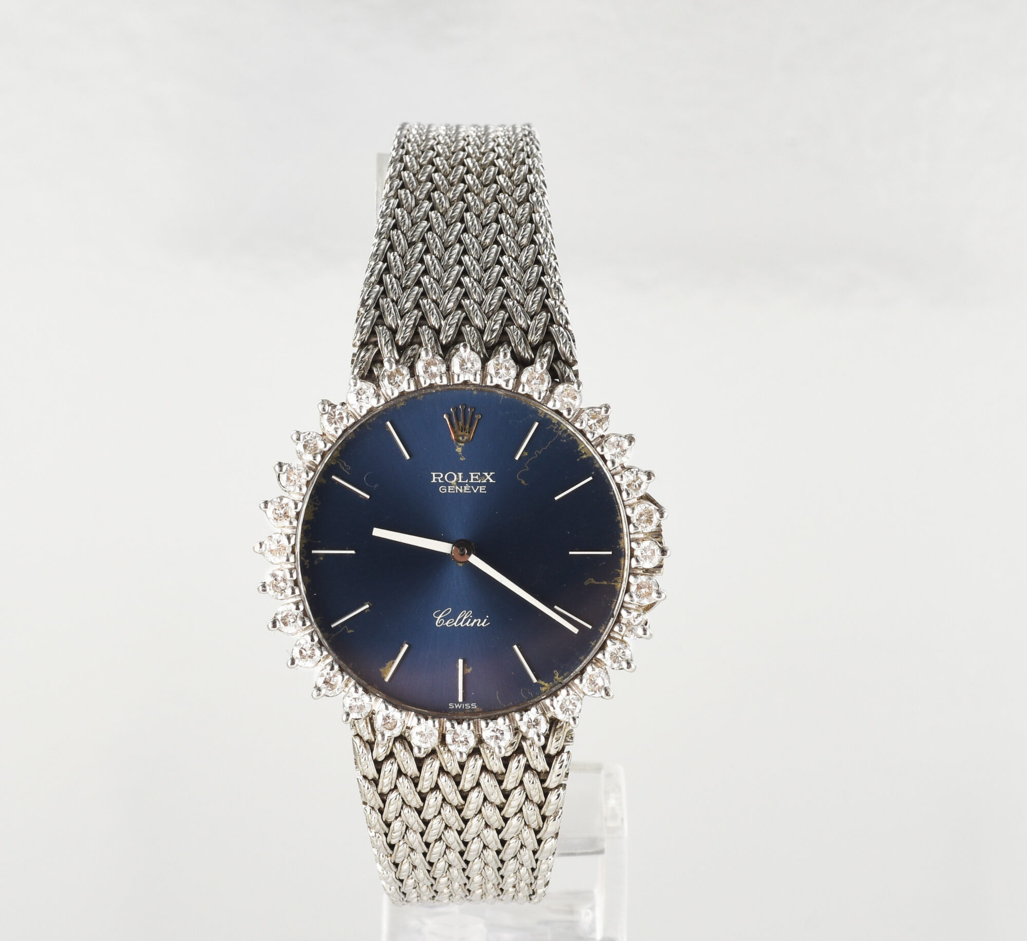 Vintage ROLEX Cellini watch in 18K White Gold & Silver w/Diamonds Ref. 4109 10