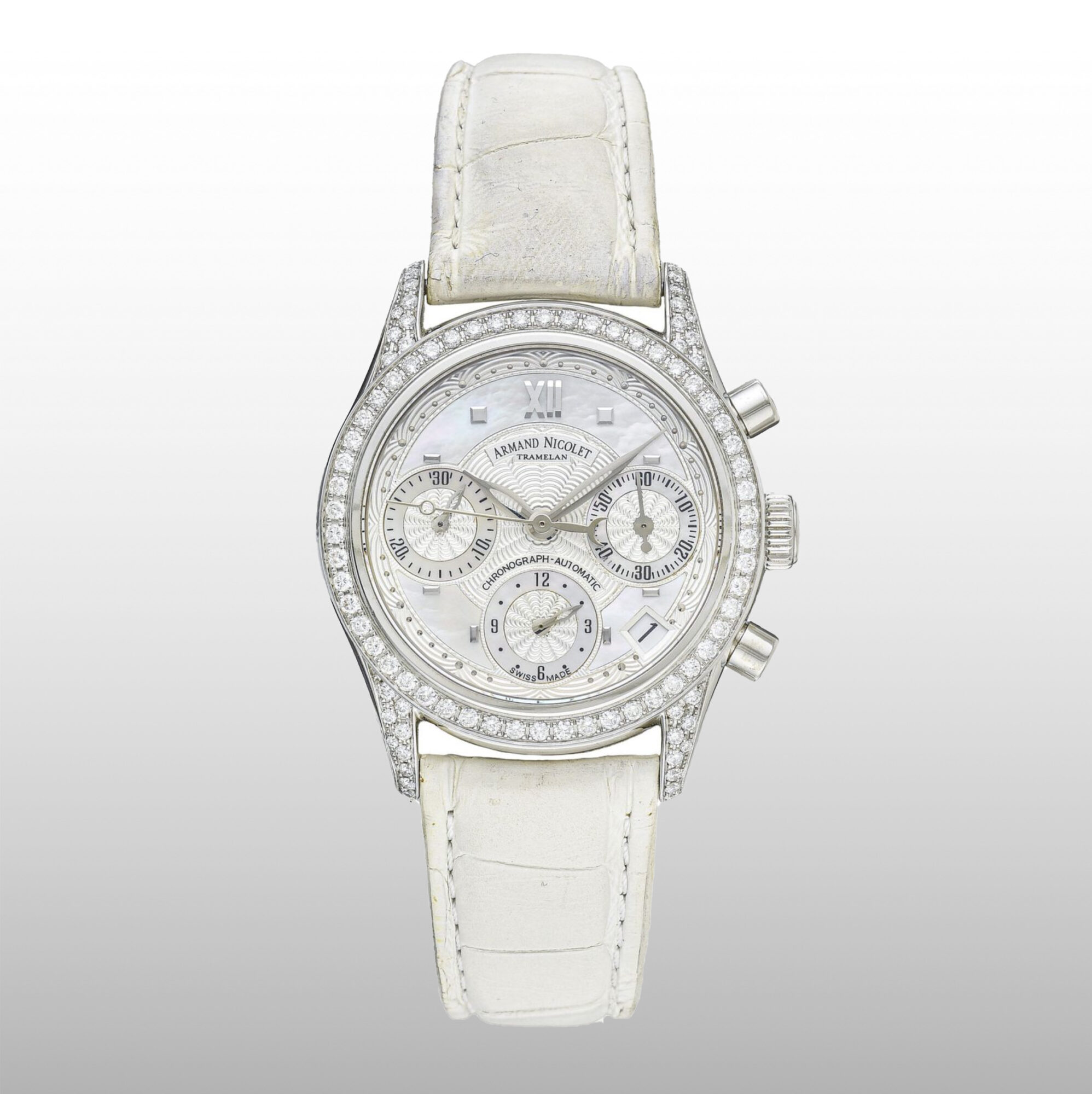 2000s Armand Nicolet Chronograph Stainless Steel watch w/Diamonds; box&papers