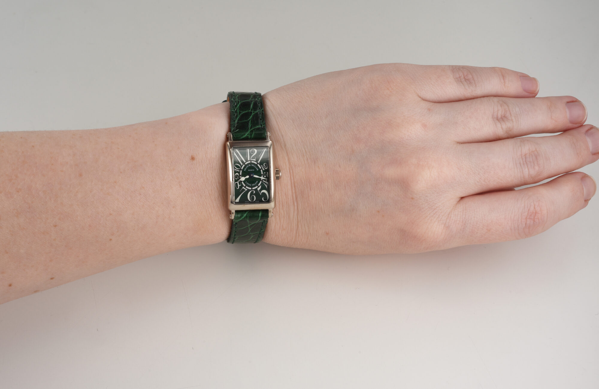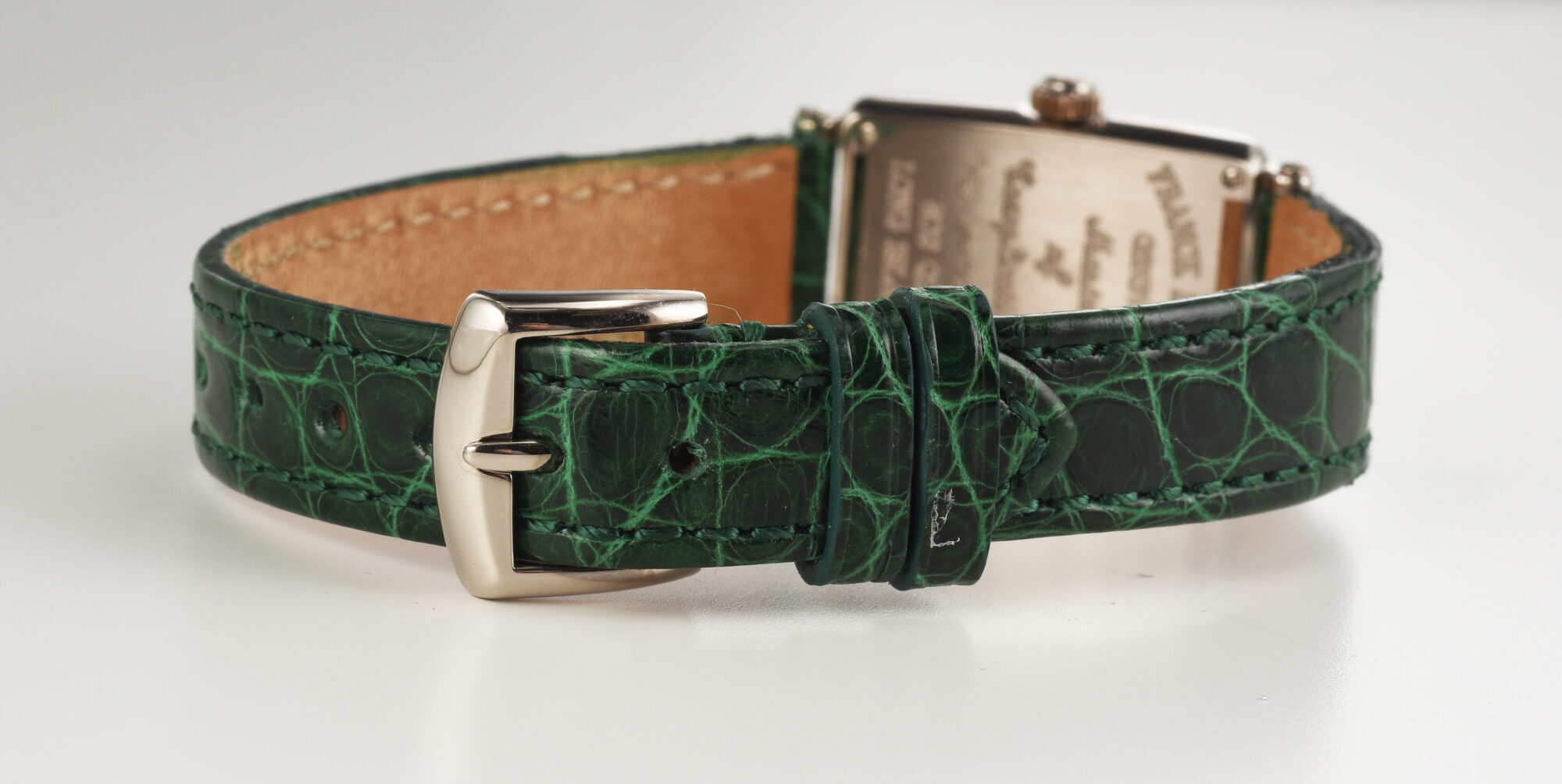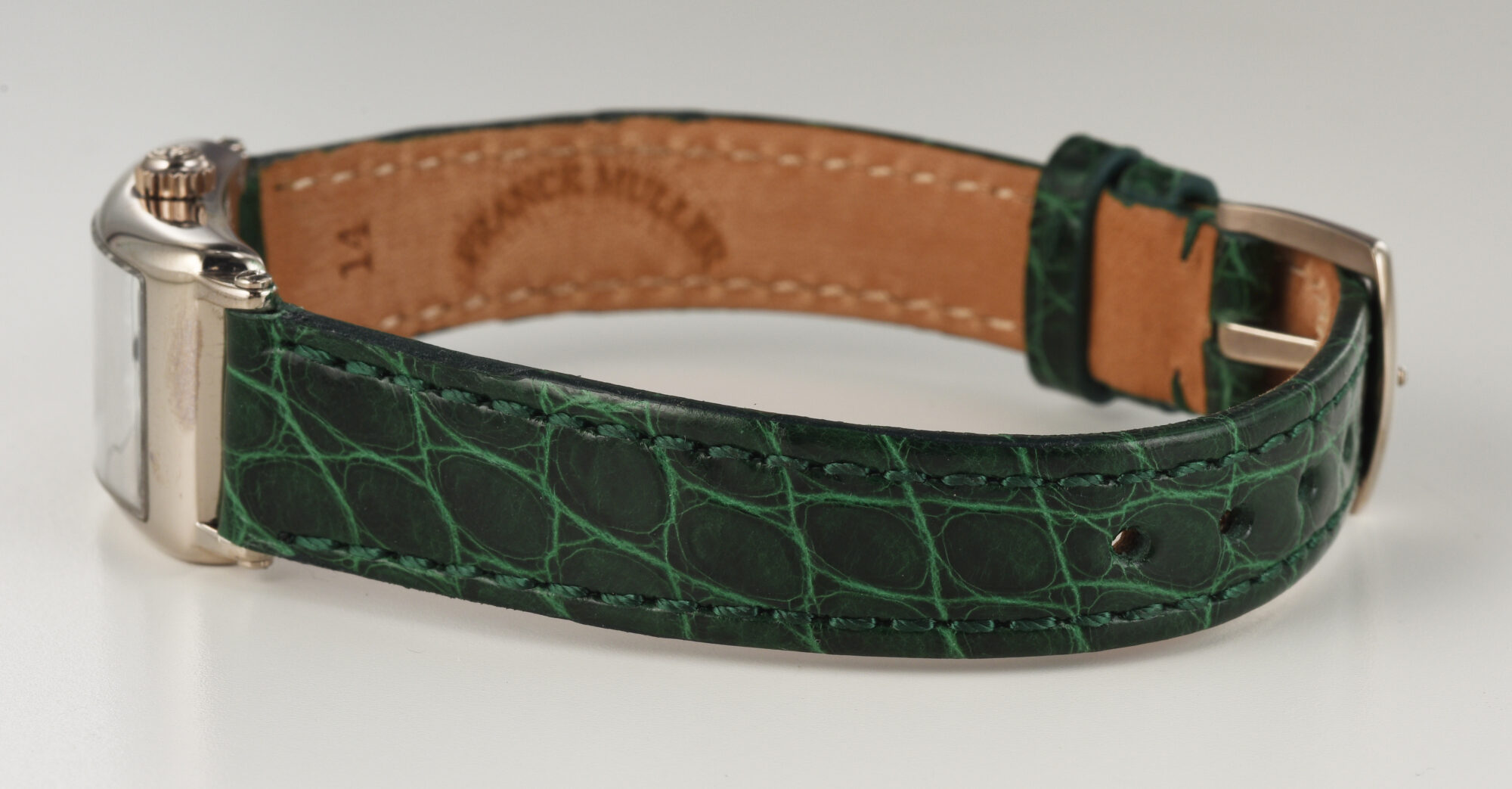 Band: Adjustable Green color Leather, not “Franck Muller”